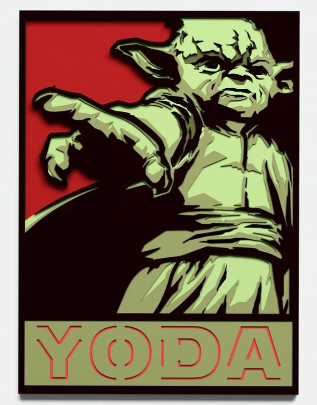 One of our all time favorite green Jedi Masters is here! The infamous Jedi Master Yoda. And now, from Master Yoda and us, "may the Force be with you." This is a 3D layered wall sign decoration. It was made of 1/4 birch plywood and includes six separate hand painted layers. 11"x14.6"x1.5" Any custom size available per your request. Every order is processed within two business days. The colors may vary due to wood grain.